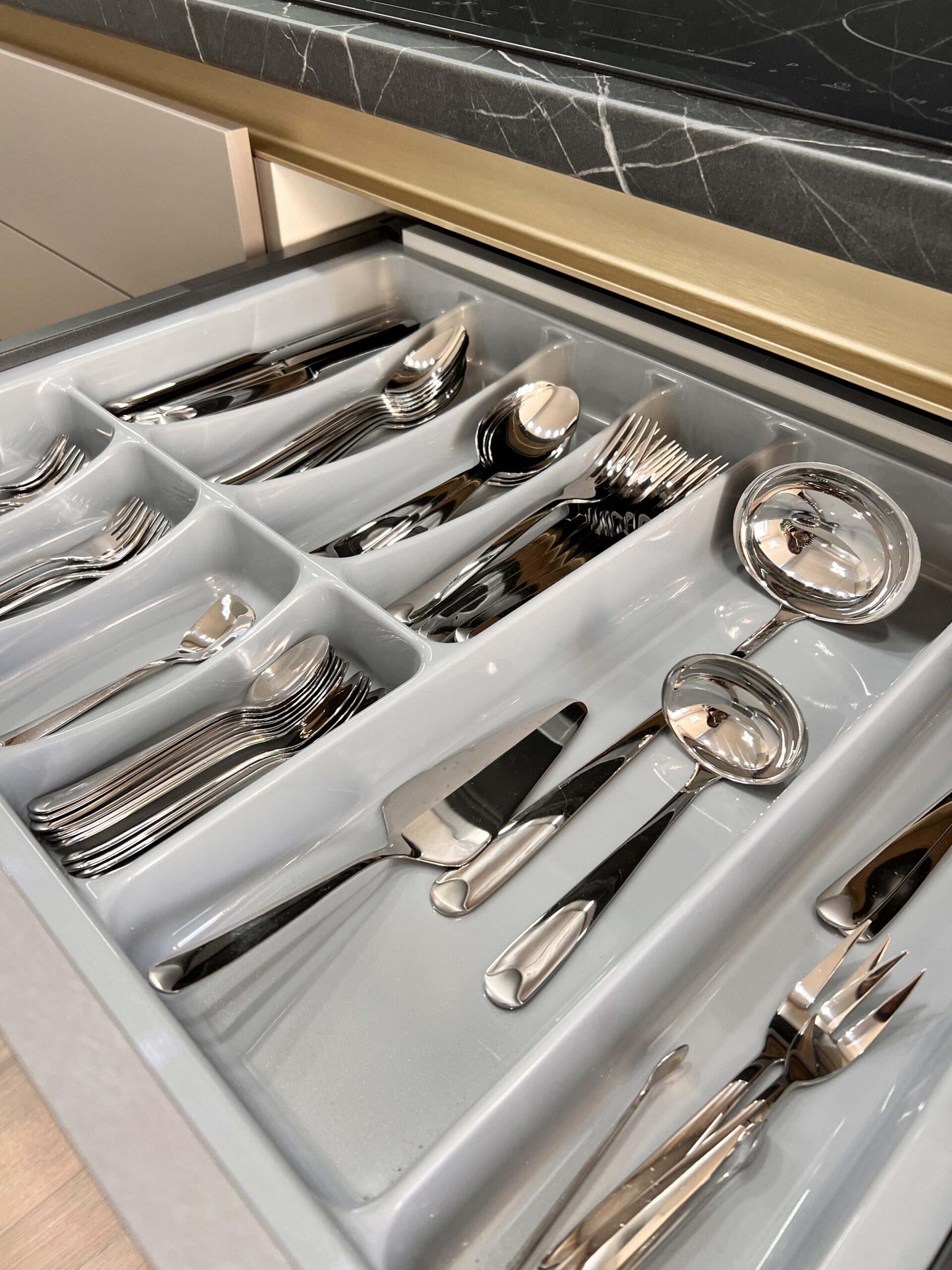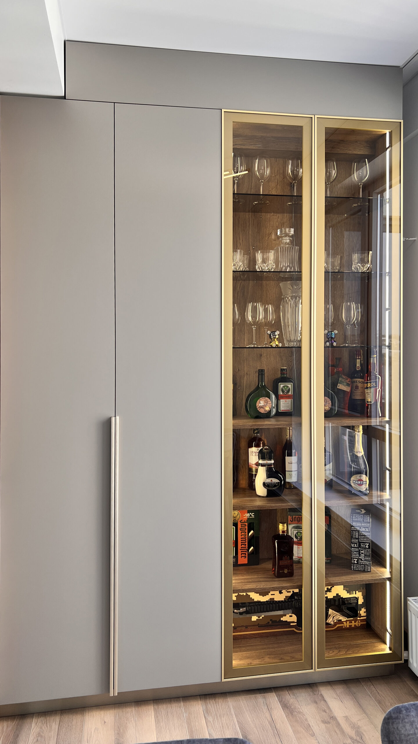 Bucătăria modernă cu vitrină Aurie
